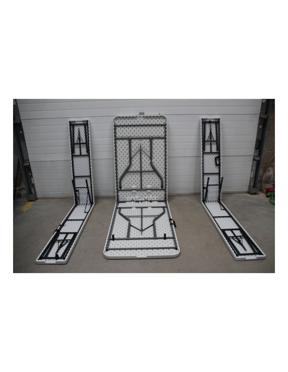 Table en pvc : 240 cm de long, 75,5 cm de large, 74 cm de haut